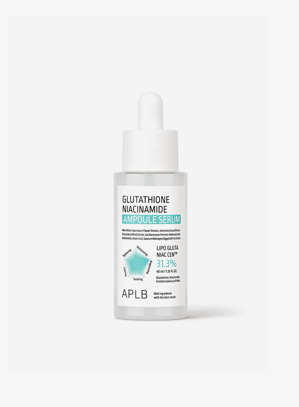 - Niacinamide and Glutathione work to brighten and revitalize